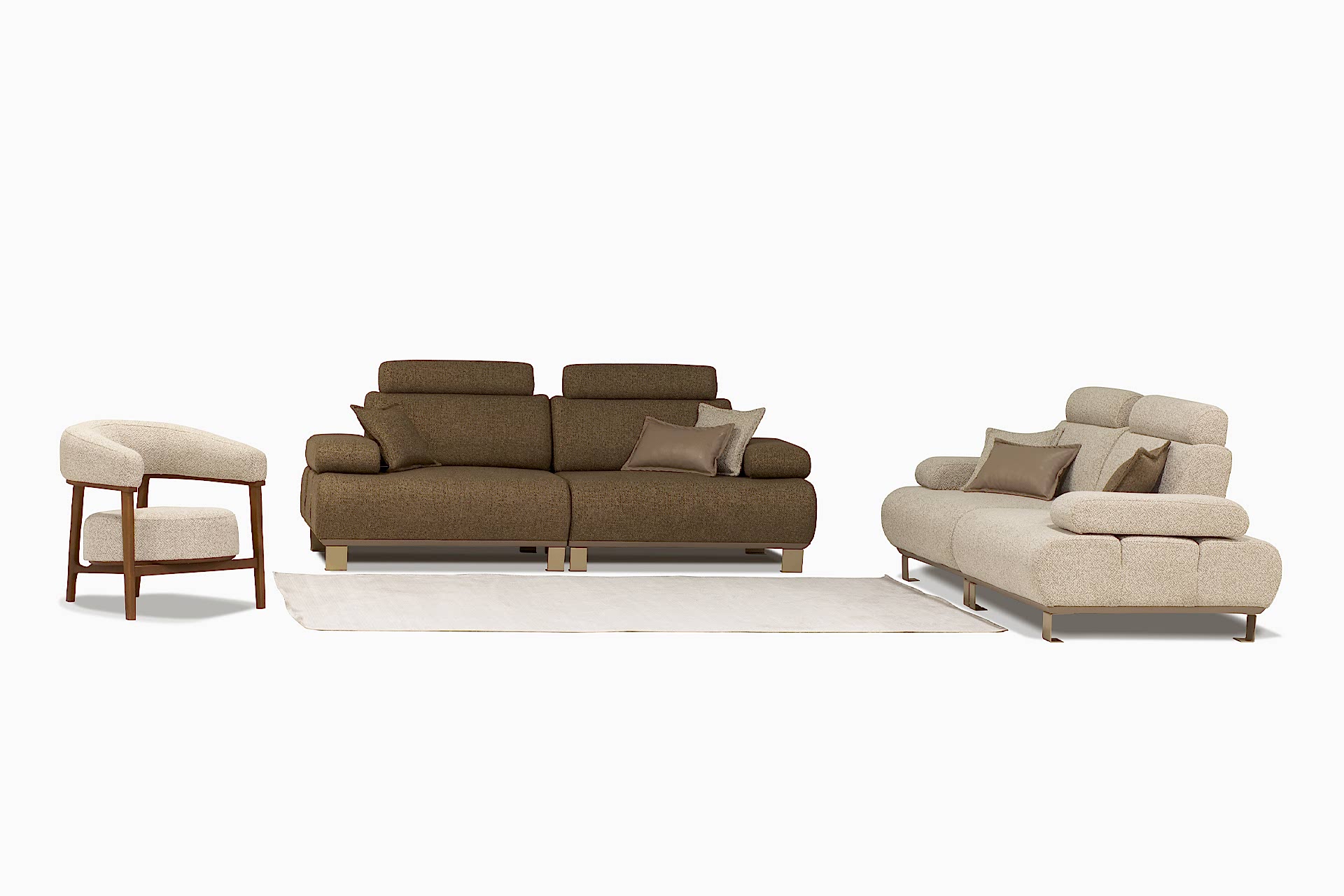 Oturum derinliği, ayak yüksekliği, sırt rahatlığı ile sınırsız renk ve kumaş seçenekleriyle